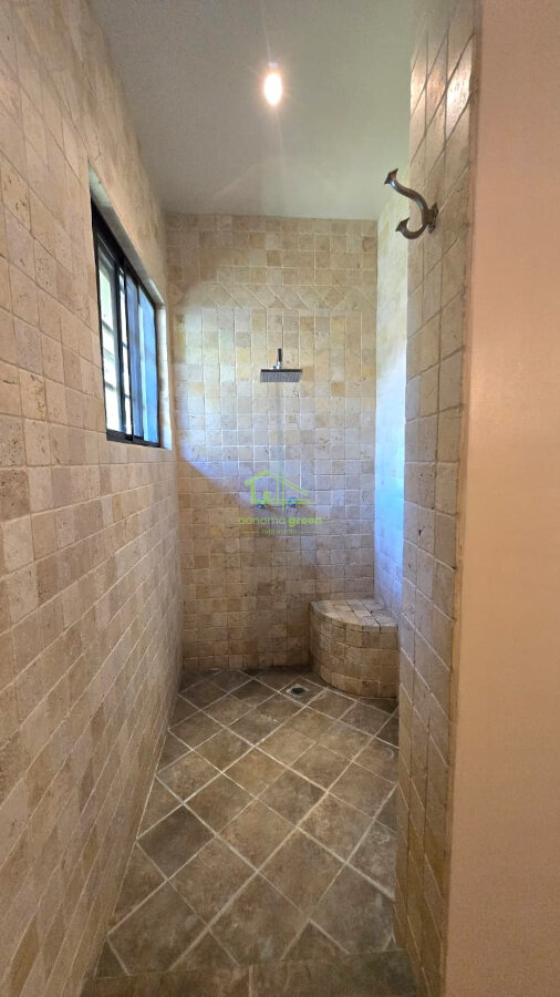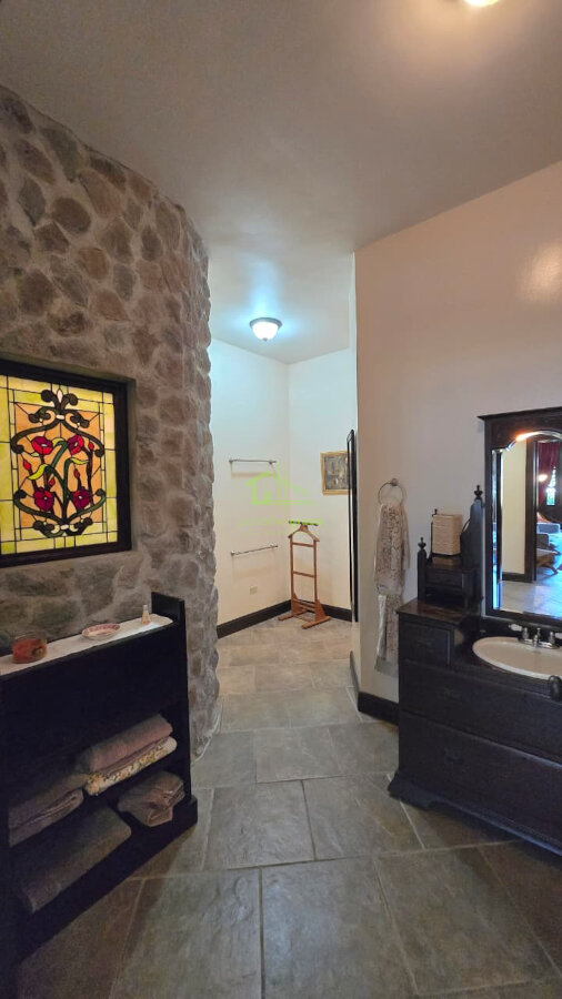 The layout includes two spacious bedrooms and two full bathrooms. The bathrooms are generously sized, with one featuring a large walk-in shower and another offering a luxurious soaking tub, ideal for relaxation after enjoying Boquete’s cool mountain climate.